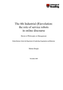 The 4th Industrial Revolution is expected to profoundly change the contemporaneous society. Despite rising in the manufacturing industries, by the name of Industry 4.0, business leaders are increasingly turning their attention towards services and service industries. Scholars in management and social sciences have started to conduct their examinations; however, the emerging intellectual structure of this nascent field of literature has never been synthesised. Moreover, little is known about the role of Industry 4.0 initiatives in the service industries since no study so far has critically analysed the service component of this disruptive phenomenon. In particular, in the literature pertaining to the digital transformation of services, the infusion of artificial intelligence in service robots – one of the technological pillars of Industry 4.0 – is perceived as a crucial source of innovation, able to redefine the service experience, especially in the tourism domain. However, there is no empirical evidence, in the post-service consumption phase, that sheds light on the peculiarities of service robots and most notably on their influence on perceived overall service quality and customer satisfaction. To bridge the abovementioned research gaps, this thesis demonstrates that (a) the managerial and social sciences intellectual efforts related to Industry 4.0 can be effectively classified in seven distinctive communities (Chapter 2); however, (b) services and the service industries are an unexplored but valuable component of the Industry 4.0 phenomenon (Chapter 2); (c) within the service industries, service robots, through the analysis of online conversations, are perceived as a popular and distinctive attribute in guests’ evaluation of the stay (Chapter 3); and (d) they are able to positively impact the customer experience and perceived service quality (Chapter 4). Taken together, these findings suggest that digital transformation, in the age of the 4 th Industrial Revolution, does not only promise productivity gains in the manufacturing industries but also has the capability to improve the customer experience and perceived service quality within the service industries.