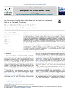 On the relationship between tropical cyclone size and environmental helicity in the South China Sea.