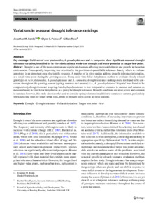 Drought is one of the most common and significant disorders affecting tree establishment and growth, in the urban environment. Consequently, improving tree selection by the provision of quantifiable tolerance data by which to evaluate genotypes is an important area of scientific research. A number of in vitro studies address drought tolerance in isolation, at a single time point during the growing season. Using an in vitro foliar dehydration method to evaluate closely related genotypes of Acer platanoides, A. pseudoplatanus and A. campestre, drought tolerance rankings were not found to be consistent throughout the growing season (spring, summer and autumn). i.e., A. pseudoplatanus ‘Negenia’ was found to be comparatively drought tolerant in spring, but displayed moderate to low comparative tolerance in summer and autumn; as measured using in vitro foliar dehydration as a proxy for drought tolerance. Drought conditions are most severe and common in summer; however, this study discusses the need to consider spring tolerance in addition to summer or autumn, particularly when selecting trees for tough urban sites, prone to drought stress across all three seasons.