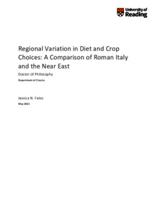 Regional variation in diet and crop choices: a comparison of Roman Italy and the Near EastFeito, J. N. (2021) Regional variation in diet and crop choices: a comparison of Roman Italy and the Near East. PhD thesis, University of Reading