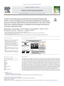 Transfer of polychlorinated, brominated and mixed-halogenated dioxins, furans and biphenyls, polychlorinated naphthalenes and alkanes, polycyclic aromatic hydrocarbons and chlorobenzenes to the milk of dairy cattle from controlled ingestion of industrial and municipal bioresources recycled to agricultural land.