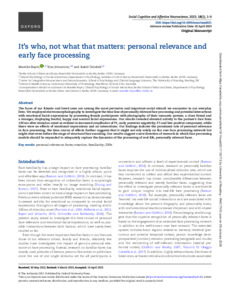 Bayer, M. ORCID: https://orcid.org/0000-0002-4521-733X, Johnstone, T. and Dziobek, I. (2023) It’s who, not what that matters: personal relevance and early face processing. Social Cognitive and Affective Neuroscience, 18 (1). nsad021. ISSN 1749-5024 doi: 10.1093/scan/nsad021