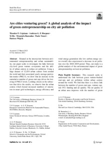 Cojoianu, T. F., Hoepner, A. G. F., Hu, X., Ramadan, M., Veneri, P. and Wójcik, D. (2024) Are cities venturing green? A global analysis of the impact of green entrepreneurship on city air pollution. Small Business Economics, 62. pp. 523-540. ISSN 1573-0913 doi: 10.1007/s11187-023-00764-4