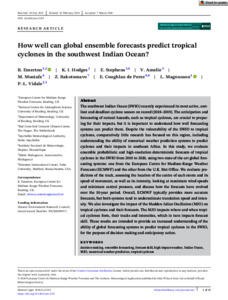 Emerton, R., Hodges, K. I. ORCID: https://orcid.org/0000-0003-0894-229X, Stephens, E. ORCID: https://orcid.org/0000-0002-5439-7563, Amelie, V., Mustafa, M., Rakotomavo, Z., Coughlan de Perez, E., Magnusson, L. and Vidale, P.-L. ORCID: https://orcid.org/0000-0002-1800-8460 (2024) How well can global ensemble forecasts predict tropical cyclones in the southwest Indian Ocean? Meteorological Applications, 31 (3). e2195. ISSN 1469-8080 doi: 10.1002/met.2195