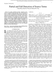 It is advisable to refer to the publisher's version if you intend to cite from this work. See Guidance on citing. To link to this item DOI: 10.1109/tcsii.2023.3311814 Abstract/SummaryIn modern industrial networks, important source terms are monitored during operations. Due to the shortage of sensors or changes of components and connections, all the source terms may not be uniquely detected. This paper is dealt with the problem of partial and full detection of source terms in linear systems. The existence of a partially unique solution for a linear system is analyzed and an algorithm is proposed to identify the maximum set of unique partial solutions. Furthermore, an algorithm is developed to achieve the minimum realization of a unique full solution with additional measurements. The proposed methods are demonstrated through numerical examples and applied to a circuit analysis problem and a source term estimation problem in chemical industrial parks.