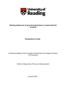 Nesting preferences of ground-nesting bees in commercial fruit orchardsTsiolis, K. (2023) Nesting preferences of ground-nesting bees in commercial fruit orchards. PhD thesis, University of Reading
