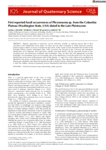 It is advisable to refer to the publisher's version if you intend to cite from this work. See Guidance on citing. To link to this item DOI: 10.1002/jqs.3595 Abstract/SummaryReptiles, squamates in particular, can be extremely valuable as indicator species due to their commonly small fundamental niche ranges. Yet these taxa are often overlooked in North American Cenozoic palaeoecological studies in favour of mammalian specimens. At the Coyote Canyon Mammoth Site (CCMS) on the Columbia Plateau (eastern Washington State, USA) excavation focused on the collection and subsequent identification of all diagnostic fossil specimens, whether associated directly with the mammoth remains or not, including small non-mammalian vertebrates and invertebrates. Here we show that with appropriate excavation techniques, microvertebrate fossils are recoverable and can be identified to at least the genus level. We place the identification of two fossils of Phrynosoma at the CCMS, dated to approximately 13 ka and 15 ka, in the context of all recorded fossils identified to this genus in North America since the Middle Miocene. These specimens represent the first fossils of Phrynosoma adequately described and reported from the Columbia Plateau and the greater Pacific Northwest.