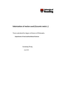 Valorisation of melon seed (Cucumis melo L.)Zhang, G. (2023) Valorisation of melon seed (Cucumis melo L.). PhD thesis, University of Reading