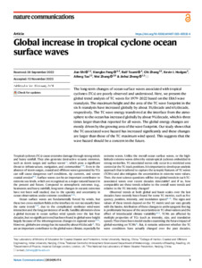 The long-term changes of ocean-surface waves associated with tropical cyclones (TCs) are poorly observed and understood. Here, we present the global trend analysis of TC waves for 1979–2022 based on the ERA5 wave reanalysis. The maximum height and the area of the TC wave footprint in the six hourly reanalysis have increased globally by about 3%/decade and 6%/decade, respectively. The TC wave energy transferred at the interface from the atmosphere to the ocean has increased globally by about 9%/decade, which is three times larger than that reported for all waves. The global energy changes are mostly driven by the growing area of the wave footprint. Our study shows that the TC-associated wave hazard has increased significantly and these changes are larger than those of the TC maximum wind speed. This suggests that the wave hazard should be a concern in the future.