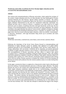 It is advisable to refer to the publisher's version if you intend to cite from this work. See Guidance on citing. To link to this item DOI: 10.1111/hequ.12481 Abstract/SummaryThe Western‐style internationalisation of Russian universities, which guided the evolution of the country's higher education sector for over three decades, has been challenged by Western sanctions following the 2022 Russian ‘Special military operation in Ukraine’. The authors show through the prism of constructivist theory how the norm on the internationalisation of higher education characterised by the strive for Westernised world‐class universities was adopted and then came to unravel in Russia. A qualitative case study based on 42 expert interviews and an analysis of political discourse and legal documents reveals how the key features of the internationalisation of Russian universities are being challenged. The authors contribute to the expert literature the notion of ‘norm reversal’, defined as the process whereby an institutionalised and internalised international norm is ‘cancelled’ in a specific country. The paper shows that the reversal in Russian higher education, which was initially ‘circumstantial’ is becoming ‘intentional’, with legal documents being drawn up to accelerate and claim ownership of it.