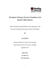 Xiong, C. (2023) The impact of energy structure transition on the electric utility industry. PhD thesis, University of Reading. doi: 10.48683/1926.00114783