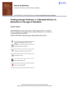 Finding George Freeman: a ‘Liberated African’ in Berkshire in the age of abolitionMoore, G. (2025) Finding George Freeman: a ‘Liberated African’ in Berkshire in the age of abolition. Slavery & Abolition, 46 (1). pp. 207-229. ISSN 1743-9523
