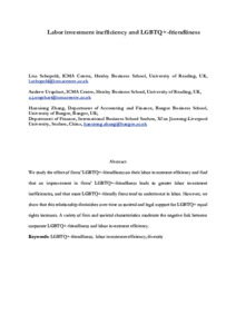 We study the effect of firms’ LGBTQ+-friendliness on their labor investment efficiency and find that an improvement in firms’ LGBTQ+-friendliness leads to greater labor investment inefficiencies, and that more LGBTQ+-friendly firms tend to underinvest in labor. However, we show that this relationship diminishes over time as societal and legal support for LGBTQ+ equal rights increases. A variety of firm and societal characteristics moderate the negative link between corporate LGBTQ+-friendliness and labor investment efficiency.