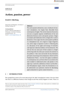 It is advisable to refer to the publisher's version if you intend to cite from this work. See Guidance on citing. To link to this item DOI: 10.1111/nous.12523 Abstract/SummaryThe active/passive distinction, once a hallmark of classical metaphysics, has largely been discarded from contemporary thought. The revival of powers theory has not seen an equally vigorous rehabilitation of the real distinction between active and passive powers. I begin an analysis and vindication with a critique of E.J. Lowe’s discussion. I then argue that the active/passive problem is a metaphysical one, not a logical or logico-linguistic one, and so logic is impotent to solve it. Following this is a discussion of the rights and wrongs of Aristotle’s and Aquinas’s (identical) defence of the distinction. We will see that one main part of their analysis is a bright red herring while the other part contains the solution to the problem. I then state and clarify the key Scholastic principle concerning action and passion, which I call the Fundamental Thesis – one that will appear scandalous to contemporary ears, yet from which we can derive the tools needed to understand action and passion in the right way. I end with a definition of what I call the Minimal Metaphysical Agent, where the formulation is to be understood as an epistemic criterion for identifying agent and patient in a given causal interaction.