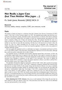 It is advisable to refer to the publisher's version if you intend to cite from this work. See Guidance on citing. To link to this item DOI: 10.1177/00220183241272299 Abstract/SummaryThis is a case commentary on R v Smith [2023] NICA 31. The case resulted from the first CCRC referral of a historic joint enterprise conviction from Northern Ireland since the law was held to have taken a ‘wrong turn’ in Jogee. The case note argues that there is still much confusion about the kind of cases to which Jogee applies. It also argues that the continued usage of joint enterprise language is unhelpful and possibly positively detrimental in that it helps perpetuating the impression that Jogee has a wider scope of application than it has.