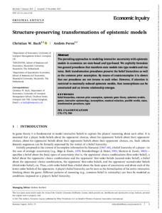 It is advisable to refer to the publisher's version if you intend to cite from this work. See Guidance on citing. To link to this item DOI: 10.1111/ecin.13136 Abstract/SummaryThe prevailing approaches to modeling interactive uncertainty with epistemic models in economics are state-based and type-based. We explicitly formulate two general procedures that transform state models into type models and vice versa. Both transformation procedures preserve the belief hierarchies as well as the common prior assumption. By means of counterexamples it is shown that our procedures are not inverse to each other. However, if attention is restricted to maximally reduced epistemic models, then isomorphisms can be constructed and an inverse relationship emerges.