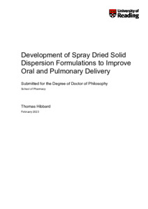 Development of spray dried solid dispersion formulations to improve oral and pulmonary deliveryHibbard, T. (2023) Development of spray dried solid dispersion formulations to improve oral and pulmonary delivery. PhD thesis, University of Reading