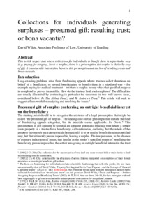 This article argues that where collections for individuals, to benefit them in a particular way (e.g. paying for surgery), leave a surplus, there is a presumption the surplus is theirs by way of gift. It examines the interaction between this presumption and the law of resulting trusts and bona vacantia.