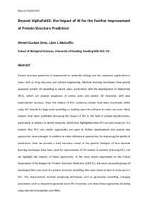 Genc, A. G. and McGuffin, L. J. ORCID: https://orcid.org/0000-0003-4501-4767 (2024) Beyond AlphaFold2: the impact of AI for the further improvement of protein structure prediction. In: Kloczkowski, A., Kurgan, L. and Faraggi, E. (eds.) Prediction of Protein Secondary Structure. Methods in molecular biology, 2867. Springer Protocols, New York, NY, pp. 121-139. ISBN 9781071641958 doi: 10.1007/978-1-0716-4196-5_7