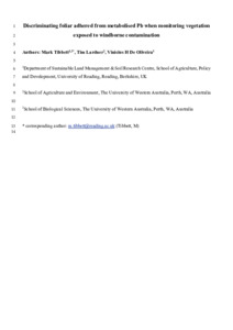 Discriminating foliar adhered from metabolised Pb when monitoring vegetation exposed to windborne contamination.
