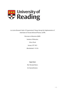 An action research study of organisational change through the implementation of Attachment & Trauma Informed Practice (ATIP)Ward, O. (2024) An action research study of organisational change through the implementation of Attachment & Trauma Informed Practice (ATIP). EdD thesis, University of Reading