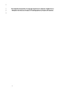 The subjective perspective of language impairment in Aphasia: insights from a metaphor-led discourse analysis of autobiographies by people with AphasiaTichborne, B. J. H. (2024) The subjective perspective of language impairment in Aphasia: insights from a metaphor-led discourse analysis of autobiographies by people with Aphasia. PhD thesis, University of Reading