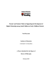 Hassanin, N. (2025) Parents’ and teachers’ roles in supporting the development of digital citizenship among Saudi children in early childhood schools. PhD thesis, University of Reading. doi: 10.48683/1926.00121606