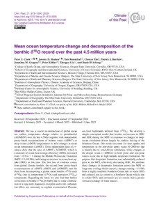 Mean ocean temperature change and decomposition of the benthic δ¹⁸O record over the past 4.5 million years.