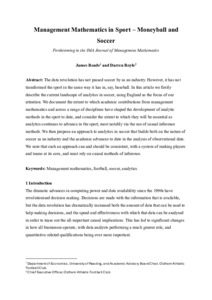 Reade, J. J. ORCID: https://orcid.org/0000-0002-8610-530X and Royle, D. (2025) Management mathematics in sport – moneyball and soccer. IMA Journal of Management Mathematics, 36 (2). pp. 181-196. ISSN 1471-6798 doi: 10.1093/imaman/dpaf015