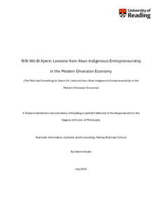 Apaw, E. (2025) TeTe Wo Bi Kyere: lessons from Akan indigenous entrepreneurship in the modern Ghanaian economy. PhD thesis, University of Reading. doi: 10.48683/1926.00122200