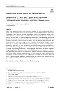 It is advisable to refer to the publisher's version if you intend to cite from this work. See Guidance on citing. To link to this item DOI: 10.1007/s10712-025-09889-5 Abstract/SummaryEarth observation data should inform decision making, but good decisions can only be made if the uncertainties in the data are taken into account. Making sense of uncertainty information can be difficult, however, because uncertainties represent the statistical spread in the observations (e.g., expressed as x +/- y), which does not relate directly to one specific use case of the data. Here, we propose a Bayesian framework to transform Earth observation product uncertainties into actionable information, i.e., estimates of how confident one can be in the occurrence of specific events of interest given the data and their uncertainty. We demonstrate this framework using two case examples: (i) monitoring drought severity based on soil moisture; and (ii) estimating coral bleaching risk based on sea surface temperature. In both cases, we show that ignoring uncertainties can easily lead to misinterpretation of the data, making any decisions based on these data unlikely to be the best course of action. The proposed framework is general and can, in principle, be applied to a wide range of applications. Doing so requires a careful dialogue between data users, to formulate meaningful use cases and decision criteria, and data producers, to provide a rigorous description of their data and its uncertainties. The next step would then be to confront the uncertainty-informed estimates of event probabilities (created by the framework proposed here) with the costs and benefits of possible courses of action in order to make the best possible decisions that maximise socioeconomic merit.
