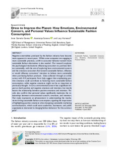 Dress to impress the planet: how emotions, environmental concern and personal values influence sustainable fashion consumption