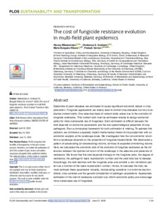 The cost of fungicide resistance evolution in multi-field plant epidemicsMikaberidze, A., Gokhale, C. S., Bargués-Ribera, M. and Verma, P. (2025) The cost of fungicide resistance evolution in multi-field plant epidemics. PLoS Sustainability and Transformation, 4 (6). e0000178. ISSN 2767-3197
