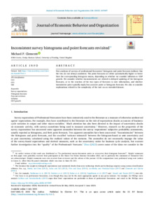 It is advisable to refer to the publisher's version if you intend to cite from this work. See Guidance on citing. To link to this item DOI: 10.1016/j.jebo.2025.107097 Abstract/SummaryPast analyses of surveys of professional forecasters’ histogram and point forecasts indicate that the two are not always consistent. The point forecasts are either systematically higher or lower than the corresponding histogram means, depending on whether we consider inflation or GDP growth. We consider whether inconsistencies are related to delayed updating of the histogram forecasts, or to the reaction of the two types of forecasts to new information, and whether inconsistent pairs typically imply less accurate point or histogram forecasts. We also re-consider explanations related to the complexity of the task on an extended dataset.