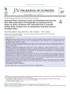 Sequential meals containing animal and plant based saturated fats have differential effects on postprandial gut hormones but no impact on satiety compared with unsaturated fats in generally healthy men: findings from the randomized controlled crossover CocoHeart study