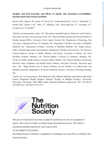 It is advisable to refer to the publisher's version if you intend to cite from this work. See Guidance on citing. To link to this item DOI: 10.1017/S0007114525103930 Abstract/SummaryA Rank Forum was convened to discuss the evidence around food insecurity (FIS), its impact on health, and interventions which could make a difference both at individual and societal level, with a focus on the UK. This paper summarises the proceedings and recommendations. Speakers highlighted the growing issue of FIS due to current economic and social pressures. It was clear that the health implications of FIS varied geographically since food insecure women in higher income regions tend to be living with overweight or obesity, in contrast to those living in low-to-middle income countries. This paradox could be due to stress and/or metabolic or behavioural responses to an unpredictable food supply. The gut microbiota may play a role given the negative effects of low fibre diets on bacterial diversity, species balance and chronic disease risk. Solutions to FIS involve individual behavioural change, targeted services and societal/policy change. Obesity-related services are currently difficult to access. Whilst poverty is the root cause of FIS, it cannot be solved simply by making healthy food cheaper due to various ingrained beliefs, attitudes and behaviours in target groups. Person-centred models, such as Capability-Opportunity-Motivation Behavioural Change Techniques and Elicit-Provide-Elicit communication techniques are recommended. Societal change or improved resilience through psychological support may be more equitable ways to address FIS and can combine fiscal or food environment policies to shift purchasing towards healthier foods. However, policy implementation can be slow to enact due to the need for strong evidence, consultation and political will. Eradicating FIS must involve co-creation of interventions and policies to ensure that all stakeholders reach a consensus on solutions.