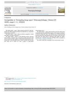 It is advisable to refer to the publisher's version if you intend to cite from this work. See Guidance on citing. To link to this item DOI: 10.1016/j.neuropsychologia.2025.109233 Abstract/SummaryNavigation means getting from here to there. Unfortunately, for biological navigation, there is no agreed definition of what we might mean by ‘here’ or ‘there’. Computer vision (‘Simultaneous Localisation and Mapping’, SLAM) uses a 3D world-based coordinate frame but that is a poor model for biological spatial representation. Another possibility is to use an image-based rather than a map-based representation. The image-based strategy is made simpler if the observer maintains fixation on a stationary point in the scene as they move. This strategy would require a system for relating different fixation points to one another as the observer moves through the environment. I describe how this can be done by, first, relating fixations to an egocentric representation of visual direction and, second, encoding egocentric representations in a coarse-to-fine hierarchy. The coarsest level of this hierarchy is, in some sense, a world-based frame as it does not vary with eye rotation or observer translation. This representation could be implemented as a ‘policy’, a term used in reinforcement learning to describe a set of states and associated actions, or a ‘graph’ that describes how images or sensory states can be connected by actions. I discuss some of the psychophysical evidence relating to these differing hypotheses about spatial representation and navigation. I argue that this evidence supports image-based rather than map-based representation.