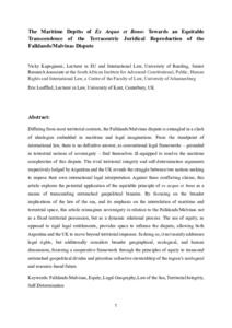 It is advisable to refer to the publisher's version if you intend to cite from this work. See Guidance on citing. To link to this item DOI: 10.1163/18757413-bja10028 Abstract/SummaryDiffering from most territorial contests, the Falklands/Malvinas dispute is entangled in a clash of ideologies embedded in maritime and legal imaginations. From the standpoint of international law, there is no definitive answer, as conventional legal frameworks – grounded in terrestrial notions of sovereignty – find themselves ill-equipped to resolve the maritime complexities of this dispute. The rival territorial integrity and self-determination arguments respectively lodged by Argentina and the UK reveals the struggle between two nations seeking to impose their own international legal interpretation. Against these conflicting claims, this article explores the potential application of the equitable principle of ex aequo et bono as a means of transcending entrenched geopolitical binaries. By focusing on the broader implications of the law of the sea, and its emphasis on the interrelation of maritime and terrestrial space, this article reimagines sovereignty in relation to the Falklands/Malvinas not as a fixed territorial possession, but as a dynamic relational process. The use of equity, as opposed to rigid legal entitlements, provides space to reframe the dispute, allowing both Argentina and the UK to move beyond territorial impasses. In doing so, it not merely addresses legal rights, but additionally considers broader geographical, ecological, and human dimensions, fostering a cooperative framework through the principles of equity to transcend entrenched geopolitical divides and prioritise collective stewardship of the region’s ecological and resource-based future.