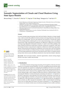 It is advisable to refer to the publisher's version if you intend to cite from this work. See Guidance on citing. To link to this item DOI: 10.3390/rs17173120 Abstract/SummaryIn remote sensing image processing, cloud and cloud shadow detection is of great significance, which can solve the problems of cloud occlusion and image distortion, and provide support for multiple fields. However, the traditional convolutional or Transformer models and the existing studies combining the two have some shortcomings, such as insufficient feature fusion, high computational complexity, and difficulty in taking into account local and long-range dependent information extraction. In order to solve these problems, this paper proposes the MCloud model based on Mamba architecture is proposed, which takes advantage of its linear computational complexity to effectively model long-range dependencies and local features through the coordinated work of state space and convolutional support and the Mamba-convolutional fusion module. Experiments show that MCloud have the leading segmentation performance and generalization ability on multiple datasets, and provides more accurate and efficient solutions for cloud and cloud shadow detection.