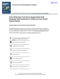 It is advisable to refer to the publisher's version if you intend to cite from this work. See Guidance on citing. To link to this item DOI: 10.1080/00220388.2024.2361158 Abstract/SummaryDeveloping countries have a higher propensity for debt distress than their developed counterparts and small economies are more vulnerable to external shocks than larger ones. We examine the primary balances of two economies at the intersection of developing and smallness classifications – so-called small island developing states (SIDS) – T&T and Mauritius. These countries have comparable characteristics (smallness, openness, populations, and are former plantation economies with similar colonial histories) but differ in their natural resource wealth status (the former is resource-rich and the latter is resource-poor). Given the myopic insights provided by single metrics of government indebtedness, such as the debt-to-GDP ratio, we augment standard fiscal reaction functions with purpose-built debt sustainability measures that use principal component analysis to consolidate the information content imbedded in a comprehensive range of country-relevant fiscal ratios. Our results show while debt is sustainable in both countries, fiscal policy is procyclical. We also find that debt volatility is positive and significant for T&T’s primary balance but is insignificant for Mauritius, which we attribute to the differing degrees of export-diversification between the countries. Policy recommendations include greater commitments to counter-cyclical fiscal policy in both SIDS and greater export-diversification initiatives in T&T.