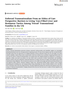 Enforced transnationalism from an ethics of care perspective: barriers to living ‘care‐filled lives’ and resistance tactics among ‘forced’ transnational families in the UK