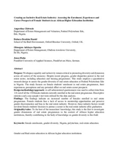Creating an inclusive real estate industry: assessing the enrolment, experiences and career prospects of female students in an African higher education institution.