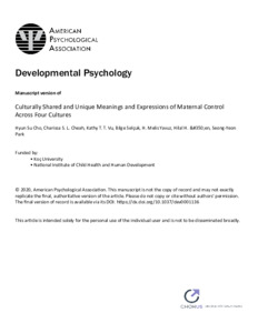Culturally shared and unique meanings and expressions of Mmaternal control across four cultures