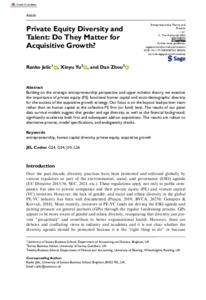 It is advisable to refer to the publisher's version if you intend to cite from this work. See Guidance on citing. To link to this item DOI: 10.1177/10422587251385536 Abstract/SummaryBuilding on the strategic entrepreneurship perspective and upper echelon theory, we examine the importance of private equity (PE) functional human capital and socio-demographic diversity for the success of the acquisitive growth strategy. Our focus is on the buyout lead partner team (LPT) rather than on human capital at the collective PE firm (or fund) level. The results of our panel data survival models suggest that gender and age diversity, as well as the financial background, significantly accelerate both first and subsequent add-on acquisitions. The results are robust to alternative proxies, model specifications and endogeneity checks.