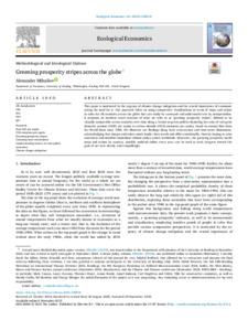 It is advisable to refer to the publisher's version if you intend to cite from this work. See Guidance on citing. To link to this item DOI: 10.1016/j.ecolecon.2025.108818 Abstract/SummaryThis paper is motivated by the urgency of climate change mitigation and the crucial importance of communicating the need for it. Our approach relies on using comparative visualizations in terms of maps and stripes in color for all countries across the globe that can easily be conveyed and understood even by nonspecialists. It proposes an intuitive novel measure of what we refer to as ‘greening prosperity stripes’, defined to be visually comparable across countries over time along a brown- to-green pallette depicting the ratio of real gross domestic product (GDP) per capita to carbon dioxide (CO2) emissions per capita, based on annual data from the World Bank since 1990. We illustrate our findings along both cross-section and time- series dimensions, acknowledging that images and colors speak louder than words and affect emotionally, thereby hoping to raise awareness and mobilize immediate climate policy action worldwide. Moreover, the greening prosperity world maps and stripes by country, possibly updated online every year, can be used to track progress toward the goal of net zero clearly and compellingly.