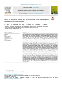 | Effect of the garlic matrix and inclusion level on in vitro methane production and fermentation