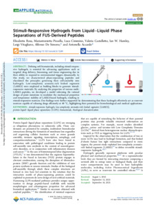 It is advisable to refer to the publisher's version if you intend to cite from this work. See Guidance on citing. To link to this item DOI: 10.1021/acsami.5c15249 Abstract/SummaryDefining soft biomaterials, including stimuli-responsive hydrogels, is essential for advancing applications such as targeted drug delivery, biosensing, and tissue engineering due to their ability to respond to environmental triggers dynamically. In this study, we characterized phase-separating peptides and elucidated the principles governing their self-assembly into hydrogels. Low-complexity aromatic-rich kinked segments (LARKS) were employed as building blocks to generate stimuli-responsive materials. By analyzing the properties of various multi-LARKS peptides, we developed a model informing the rational design of point mutations to modulate the mechanical properties and temperature stability of LARKS-based hydrogels, resulting in stimuli-responsive matrices. Our findings were further supported by demonstrating that these hydrogels effectively act as reservoir matrices capable of releasing drugs efficiently at 40 °C, highlighting their potential for biotechnological and medical applications.