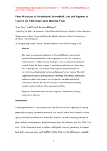 From wasteland to wonderland: brownfield land and registers as catalyst for addressing urban housing needs.