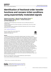 It is advisable to refer to the publisher's version if you intend to cite from this work. See Guidance on citing. To link to this item DOI: 10.1088/1361-6501/ad903d Abstract/SummaryA new methodology that uses exponentially modulated signals with arbitrary excitation waveforms for the identification of fractional order transfer functions is proposed. In contrast to previous approaches where initial conditions were not considered and the system was required to be at rest for the identification procedure, the current contribution extends the formulation to the case where the system has non-zero initial conditions, dispensing with the need to place it at a resting state. This generalization is important in feedback instrumentation and metrology applications where the measurement or control process may not be disrupted to perform identification. Moreover, the procedure has a broader scope of applications because it structurally contemplates the case when the model presents derivatives in the input. Full identification of the system parameters as well as the fractional exponents associated with the model dynamics are achieved through a grid search procedure with resolution adjustable by the user. Two simulation examples are presented to illustrate the effectiveness of the proposed approach. The first example is concerned with the effect of measurement noise at the observed system output, whereas the second involves the identification of the impedance of a three-dimensional RC network model. These types of RC networks have dynamics capturing complex phenomena with emergent responses and are ideal for emulating the complex dynamics encountered across physical sciences and in particular interdisciplinary subject areas such as biomedical engineering.