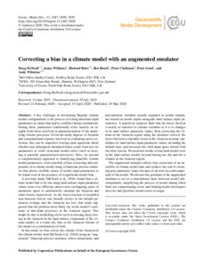 It is advisable to refer to the publisher's version if you intend to cite from this work. See Guidance on citing. To link to this item DOI: 10.5194/gmd-13-2487-2020 Abstract/SummaryA key challenge in developing flagship climate model configurations is the process of setting uncertain input parameters at values that lead to credible climate simulations. Setting these parameters traditionally relies heavily on insights from those involved in parameterisation of the underlying climate processes. Given the many degrees of freedom and computational expense involved in evaluating such a selection, this can be imperfect leaving open questions about whether any subsequent simulated biases result from mis-set parameters or wider structural model errors (such as missing or partially parameterised processes). Here, we present a complementary approach to identifying plausible climate model parameters, with a method of bias correcting subcomponents of a climate model using a Gaussian process emulator that allows credible values of model input parameters to be found even in the presence of a significant model bias. A previous study (McNeall et al., 2016) found that a climate model had to be run using land surface input parameter values from very different, almost non-overlapping, parts of parameter space to satisfactorily simulate the Amazon and other forests respectively. As the forest fraction of modelled non-Amazon forests was broadly correct at the default parameter settings and the Amazon too low, that study suggested that the problem most likely lay in the model's treatment of non-plant processes in the Amazon region. This might be due to modelling errors such as missing deep rooting in the Amazon in the land surface component of the climate model, to a warm–dry bias in the Amazon climate of the model or a combination of both. In this study, we bias correct the climate of the Amazon in the climate model from McNeall et al. (2016) using an “augmented” Gaussian process emulator, where temperature and precipitation, variables usually regarded as model outputs, are treated as model inputs alongside land surface input parameters. A sensitivity analysis finds that the forest fraction is nearly as sensitive to climate variables as it is to changes in its land surface parameter values. Bias correcting the climate in the Amazon region using the emulator corrects the forest fraction to tolerable levels in the Amazon at many candidates for land surface input parameter values, including the default ones, and increases the valid input space shared with the other forests. We need not invoke a structural model error in the land surface model, beyond having too dry and hot a climate in the Amazon region. The augmented emulator allows bias correction of an ensemble of climate model runs and reduces the risk of choosing poor parameter values because of an error in a subcomponent of the model. We discuss the potential of the augmented emulator to act as a translational layer between model subcomponents, simplifying the process of model tuning when there are compensating errors and helping model developers discover and prioritise model errors to target.